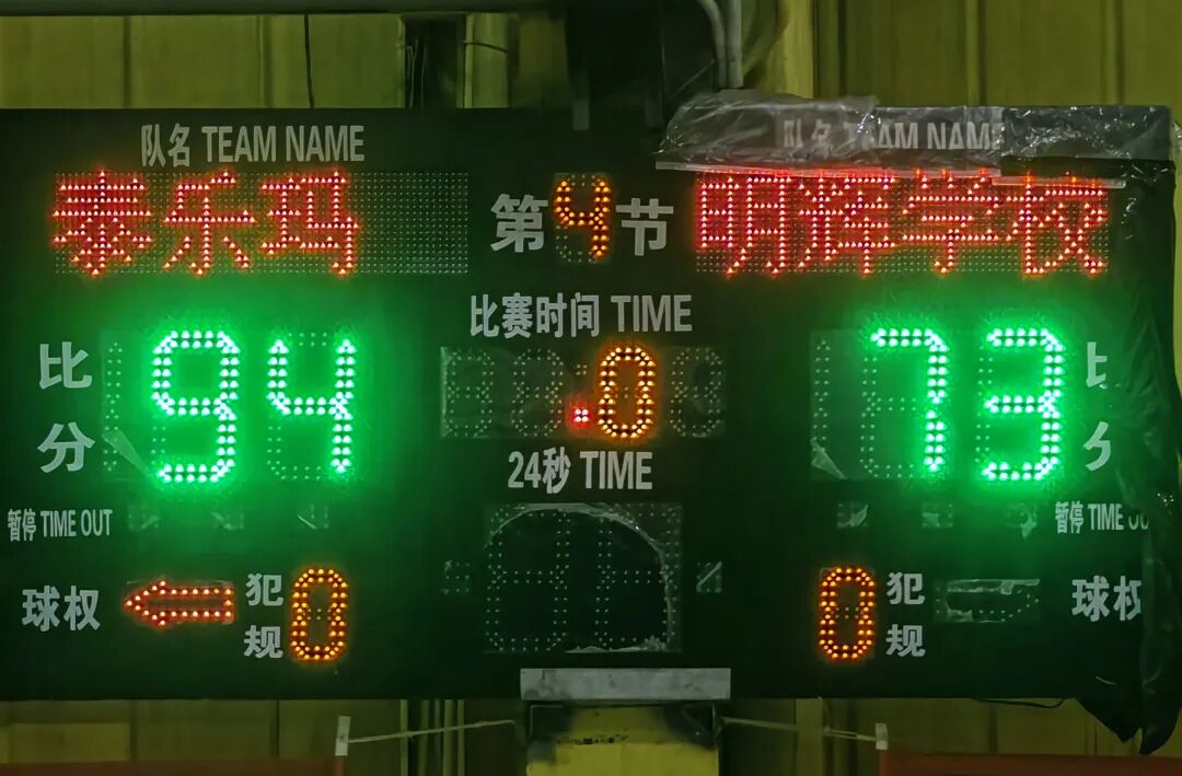 随着裁判一声哨响,全场比赛结束,泰乐玛青年队以94:73战胜明辉学校青年队,斩获4战4胜。