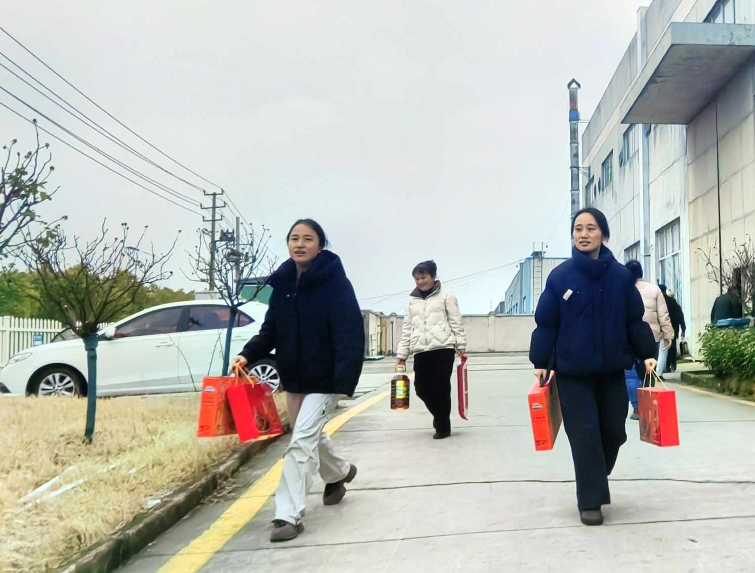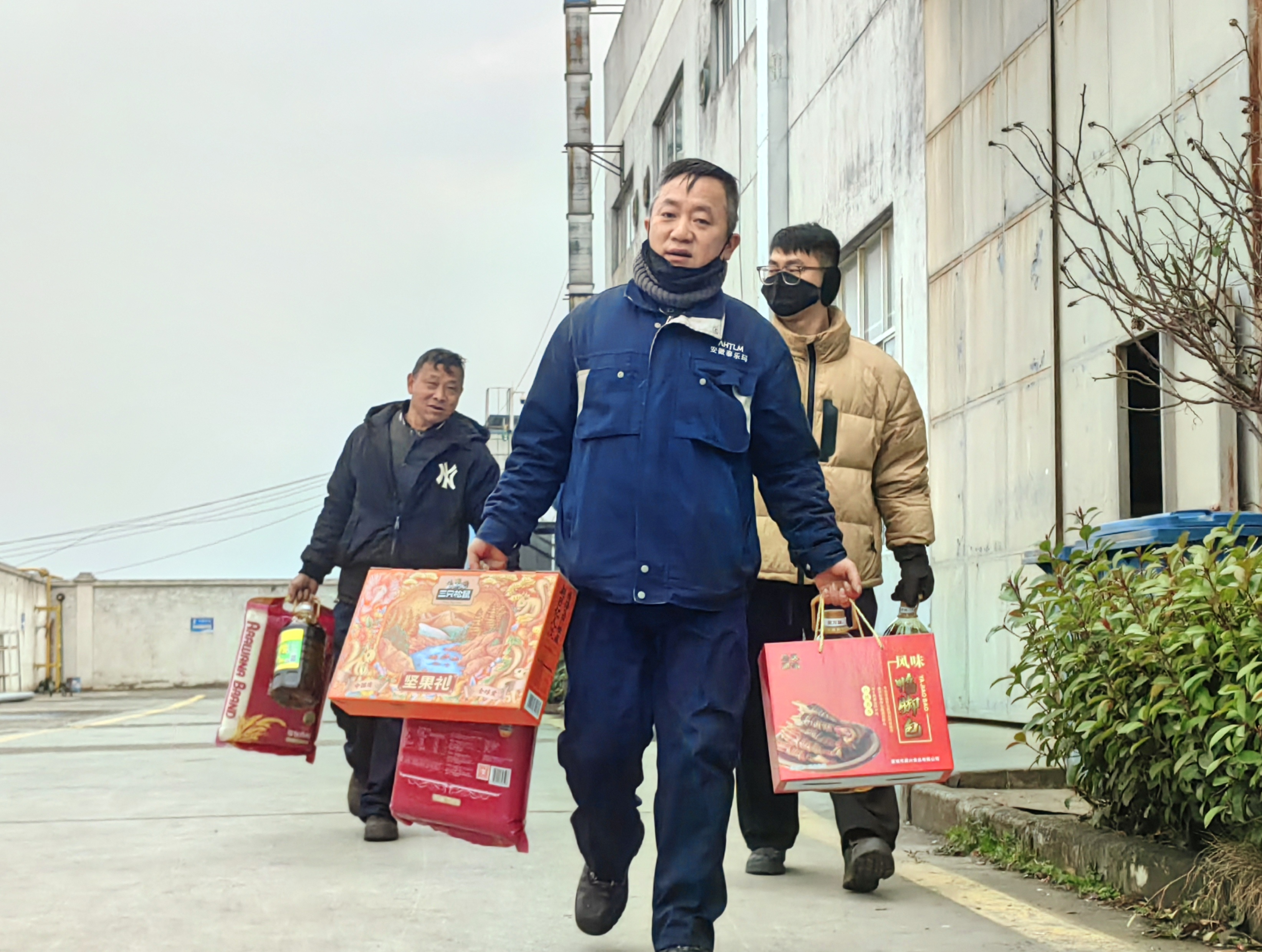 品牌坚果、风味鸭脚包、优质菜籽油、精品大米,满载浓情暖意的年货,逐一送达员工朋友的手中。