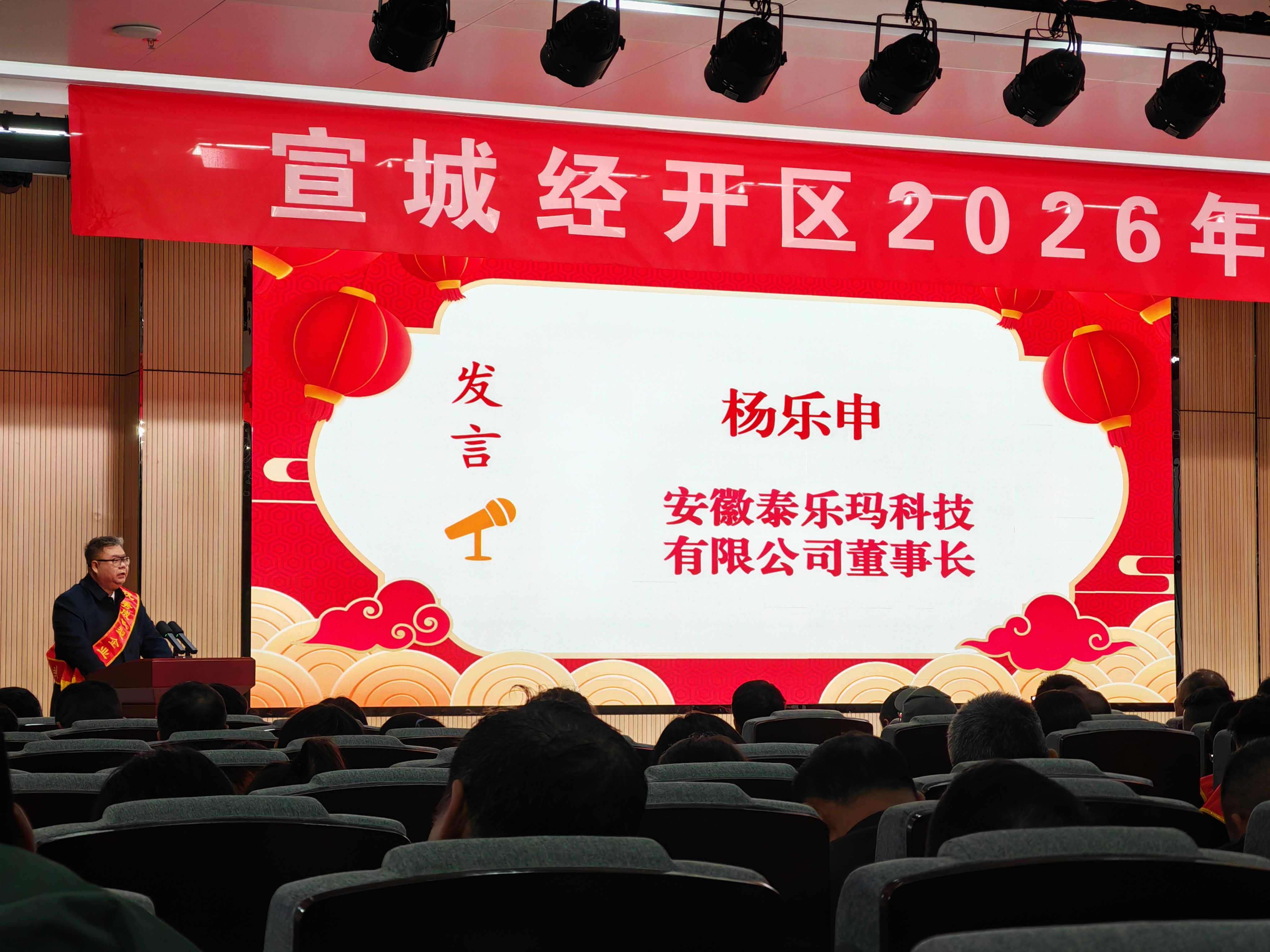 安徽泰乐玛科技有限公司在评选中位居“优秀成长型企业”榜首,喜迎2026新春开门红。公司董事长杨乐申上台领奖,并作为4家获奖企业代表之一发言。