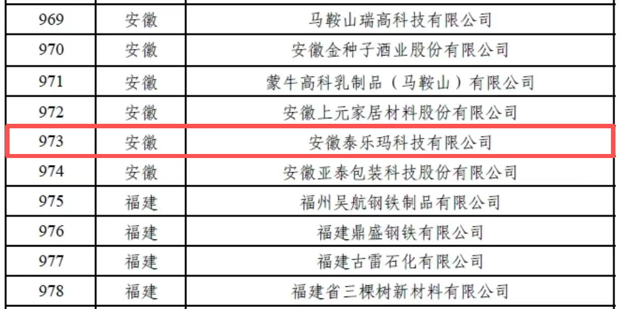 3月18日,国家工业和信息化部公布2025年度绿色工厂名单。安徽泰乐玛科技有限公司跻身榜单,荣膺国家绿色工厂称号。